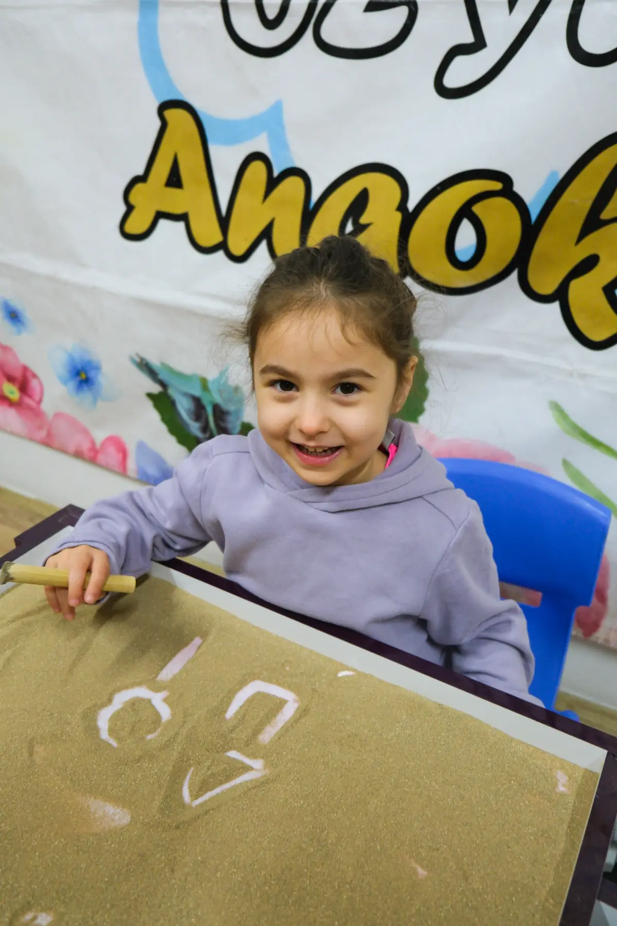 Renkli kumlarla yapılan çalışmalar, ince motor becerilerini desteklerken çocukların el-göz koordinasyonlarını da güçlendirir. Kumla yapılan desenler, çocukların dikkatlerini toplamasına ve odaklanmalarına yardımcı olur. Aynı zamanda, kumun dokusunu hissederek duyusal gelişimlerini destekler. Sabır gerektiren bir süreç olan kum sanatı, çocuklara hedef belirlemeyi ve adım adım ilerlemeyi öğretir.
