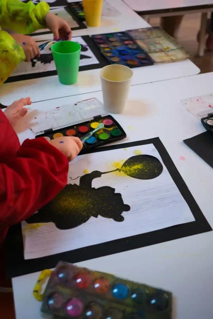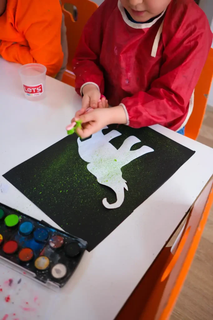 Püskürtme çalışması, çocukların renkleri ve şekilleri keşfetmelerini sağlayan eğlenceli bir sanattır. Çocuklar, sprey boya ya da su tabancası kullanarak kağıt üzerine renkli püskürtme yapar. Bu etkinlik, motor becerileri geliştirirken, yaratıcılığı ve hayal gücünü de artırır.