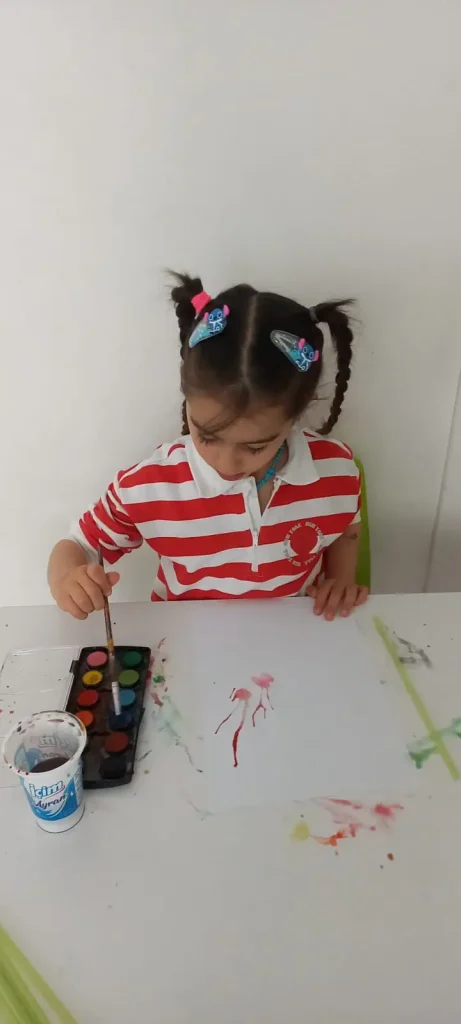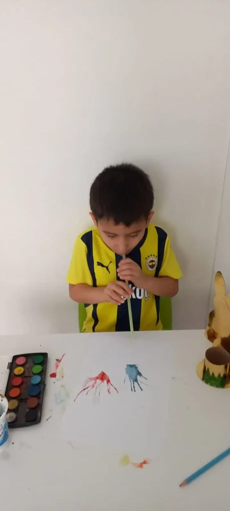 Üfleme sanatı etkinliği, çocuklarımızın yaratıcılıklarını kullanarak eğlenceli ve farklı bir resim deneyimi yaşamalarını amaçlamaktadır. Bu etkinlikte sulu boya ve pipet kullanılarak kağıt üzerine boya üflenerek özgün şekiller oluşturulur.
